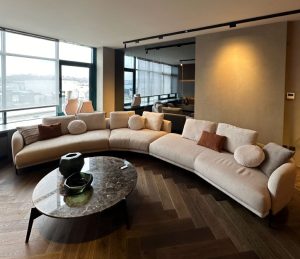 Han Kuyumculuk ofisi, Galataport’un sunduğu bu avantajlı lokasyonu ve estetik çevreyi göz önünde bulundurarak, işlevselliği ve konforu bir araya getiren şık bir home office olarak dizayn edildi. Tasarımda modern çizgiler ön planda tutulurken, kullanılan malzemelerle de lüks bir atmosfer yaratıldı. Böylece, Han Kuyumculuk’un uluslararası iş ortaklarıyla yaptığı toplantılarda şıklık ve profesyonellik öne çıkıyor.
